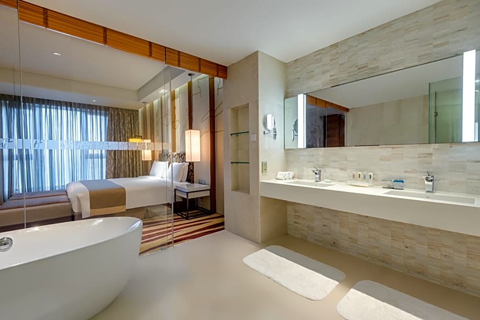This twin/double room features a mini-bar, executive lounge access and sofa. Refresh in the large bathroom with rainforest shower and bathtub.